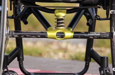 Niezwykle pomocnym dla użytkowników jest zastosowanie amortyzacji siedziska. Szczególnie poleca się to rozwiązanie przy nadmiernym obciążeniu kręgosłupa oraz profilaktycznie, chroniąc w ten sposób kręgosłup. Najbardziej typowym rozwiązaniem jest umieszczenie pary amortyzatorów sprężynowych pomiędzy belką a siedziskiem (waga: 770g). Siła docisku sprężyny oraz poziom ugięcia amortyzatora dostosowuje się do wagi użytkownika. bądź potrzeb. Docisk sprężyny można regulować samemu. Minusem tego rozwiązania są niewielkie straty energii potrzebne na pokonanie sił bezwładności amortyzatorów. Rozwiązanie to jest stosowane w modelu K-Series. Nieco innym rozwiązaniem jest innowacyjny, opatentowany przez Kuschall'a system LIS (kuschall R33) – system umieszczony w osi kręgosłupa. Zbudowany jest ze specjalnych krążków i sprężyny. Zadaniem systemu LIS jest zabezpieczenie kręgosłupa przed drganiami wynikłymi podczas jazdy wózkiem. System na tyle na tyle skutecznie tłumi drgania,że zapewnia użytkownikowi niespotykany nigdzie indziej komfort jazdy. Nie jest to typowy amortyzator – system bardzo subtelnie tłumi drgania, powodując, że stają się one prawie niezauważalne dla użytkownika.